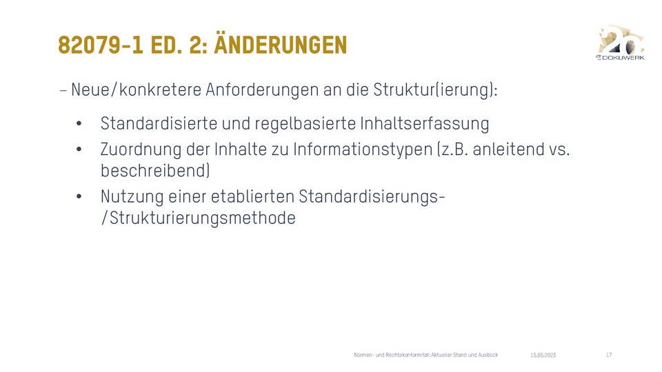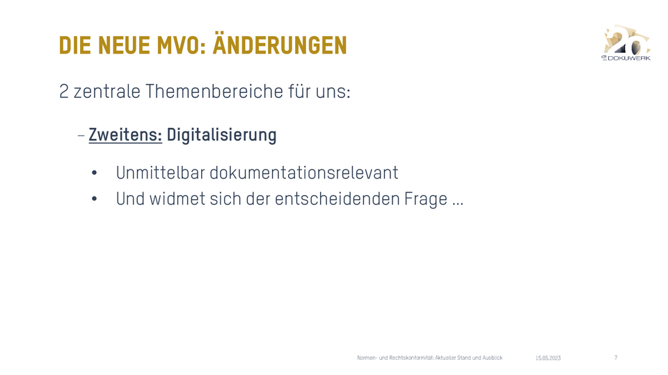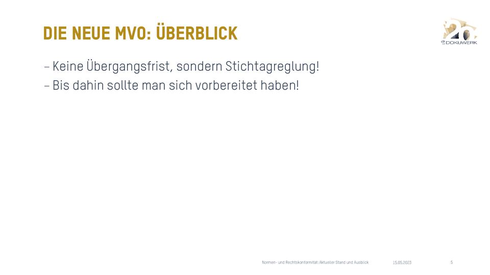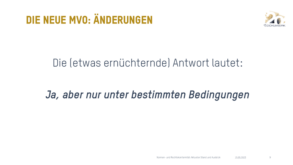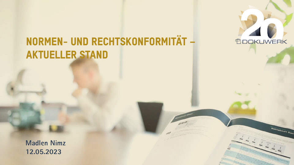 Vortrag von Madlen Nimz, Dokuwerk KG, zum Dokuwerk Firmenjubiläum 2023 Normen und Rechtskonformität - aktueller Stand 912,64 KB -